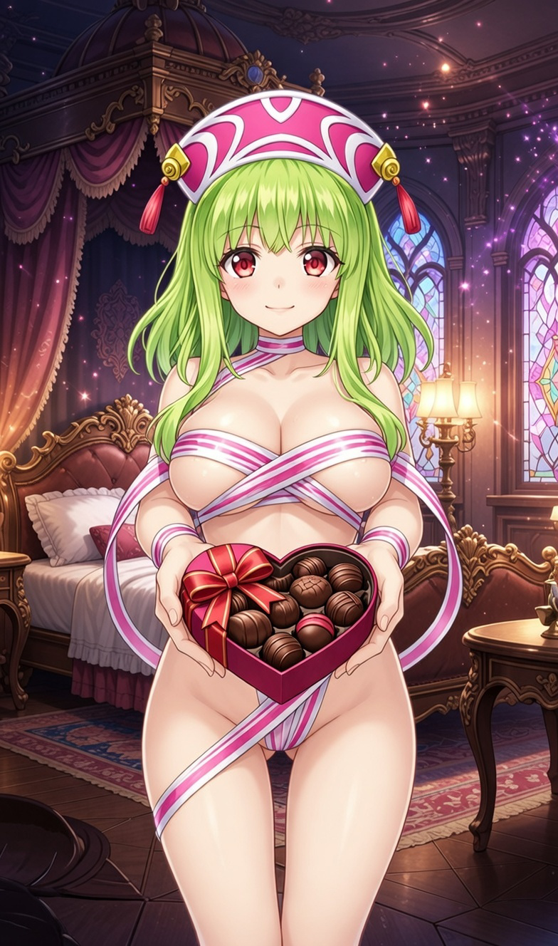 | … | 77無念Nameとしあき26/02/14(土)20:31:07No.1387382119+ 1771068667047.jpg-(411665 B) 全裸で体にピンクのリボンをまとい口にハート型のチョコをくわえて恥ずかしそうに微笑みながら |
