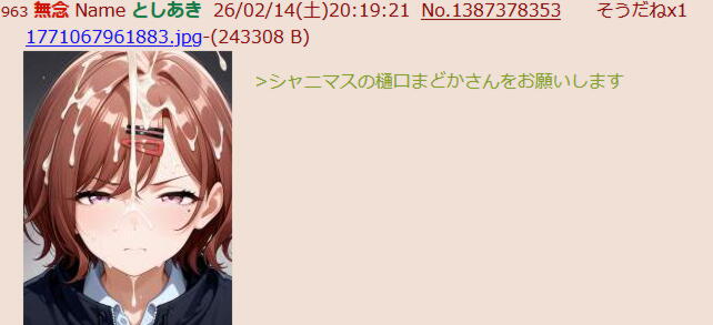 | … | 985無念Nameとしあき26/02/14(土)23:10:05No.1387433945+千なら使用済みコンドーム祭り |