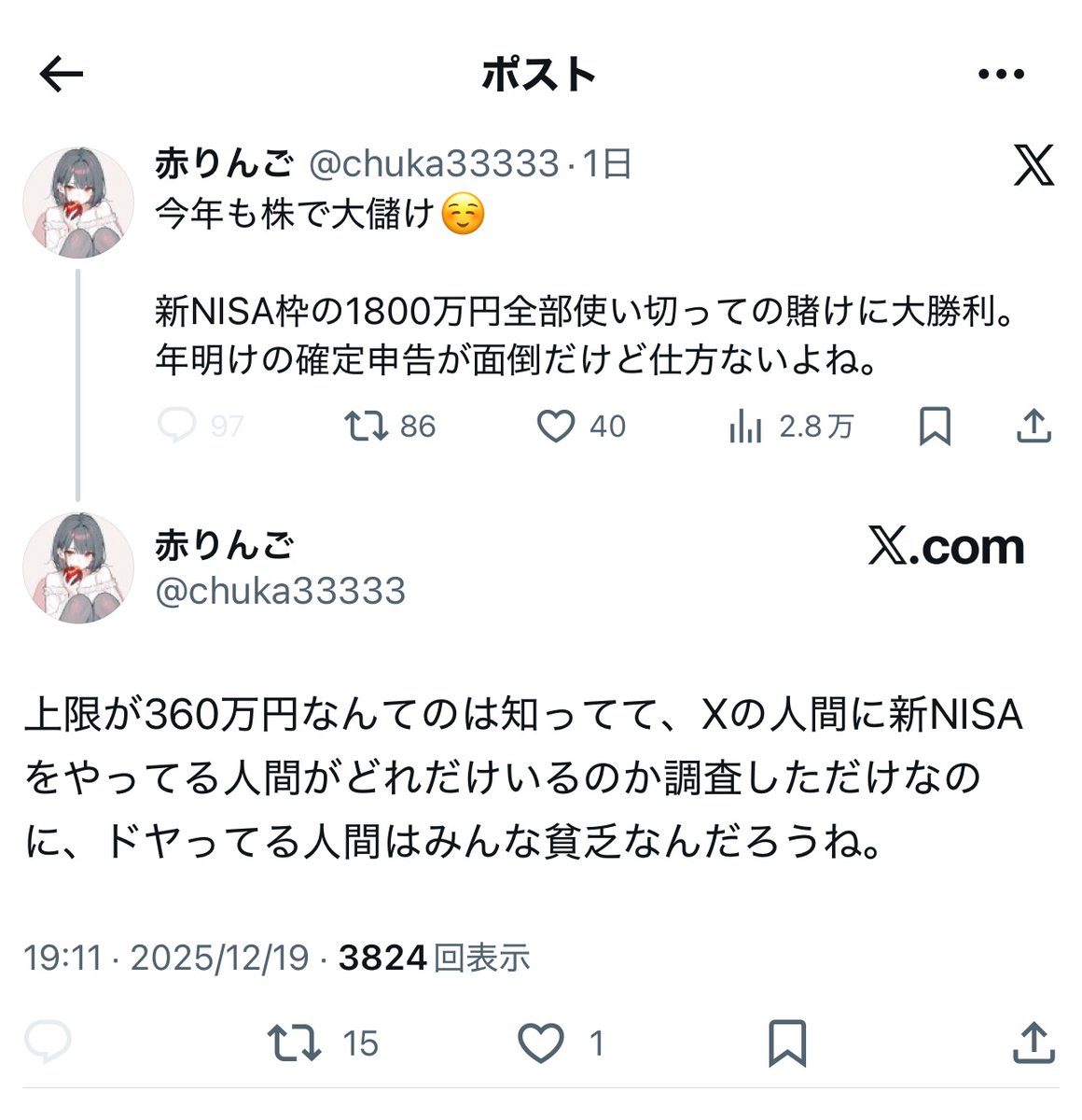 | … | 25無念Nameとしあき26/02/14(土)21:03:27No.1387392637そうだねx3文句しか言えない人間は相手する価値無いから |