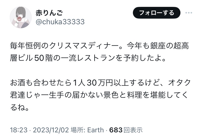 | … | 153無念Nameとしあき26/02/14(土)22:47:25No.1387427322そうだねx2急に学歴の話飛ばす辺り選民意識高そうだなって |