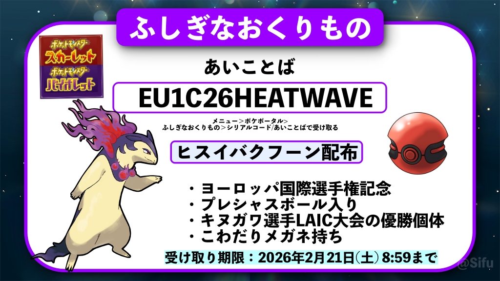 | … | 5無念Nameとしあき26/02/14(土)22:12:11No.1387415768そうだねx5プレシャスボール入りのヒスイバクフーン配布中 |