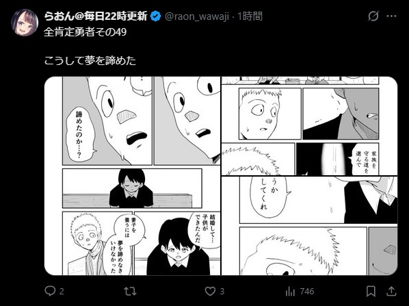 | … | 94無念Nameとしあき26/02/14(土)22:17:34No.1387417590+夢を諦めてサラリーマンになった同級生より夢を諦めずに漫画家一筋の先生のほうが偉い |