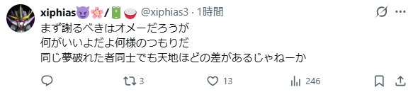 | … | 943無念Nameとしあき26/02/14(土)23:22:55No.1387437494そうだねx7>まず謝るべきはオメーだろうが |