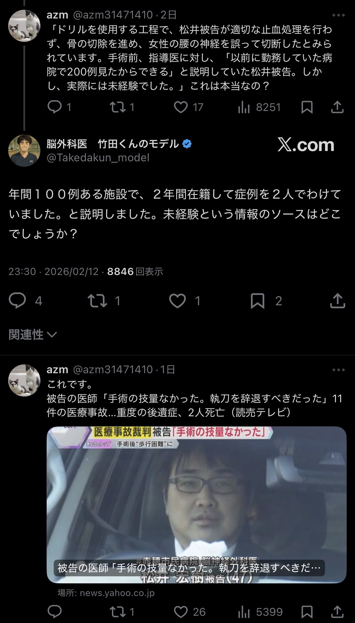 | … | 68無念Nameとしあき26/02/14(土)23:29:46No.1387439329そうだねx1医者も人間だし失敗するのは仕方ないにしても |