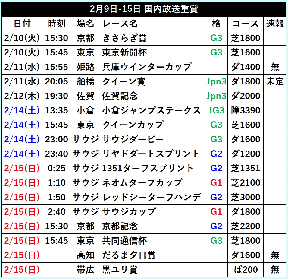 | … | 35無念Nameとしあき26/02/14(土)23:23:33No.1387437678そうだねx1今はサウジだけども共同通信杯も面子熱いな |
