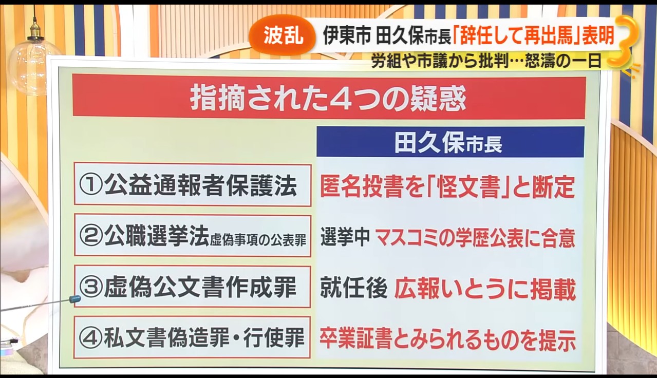 | … | 16無念Nameとしあき26/02/14(土)23:33:21No.1387440245+田久保前市長の学歴詐称問題を巡っては、警察が6つの容疑・8つの事件で捜査を進めていて、田久保前市長は警察から求められていた卒業証書の提出を拒否する回答書を12日に提出していた。 |