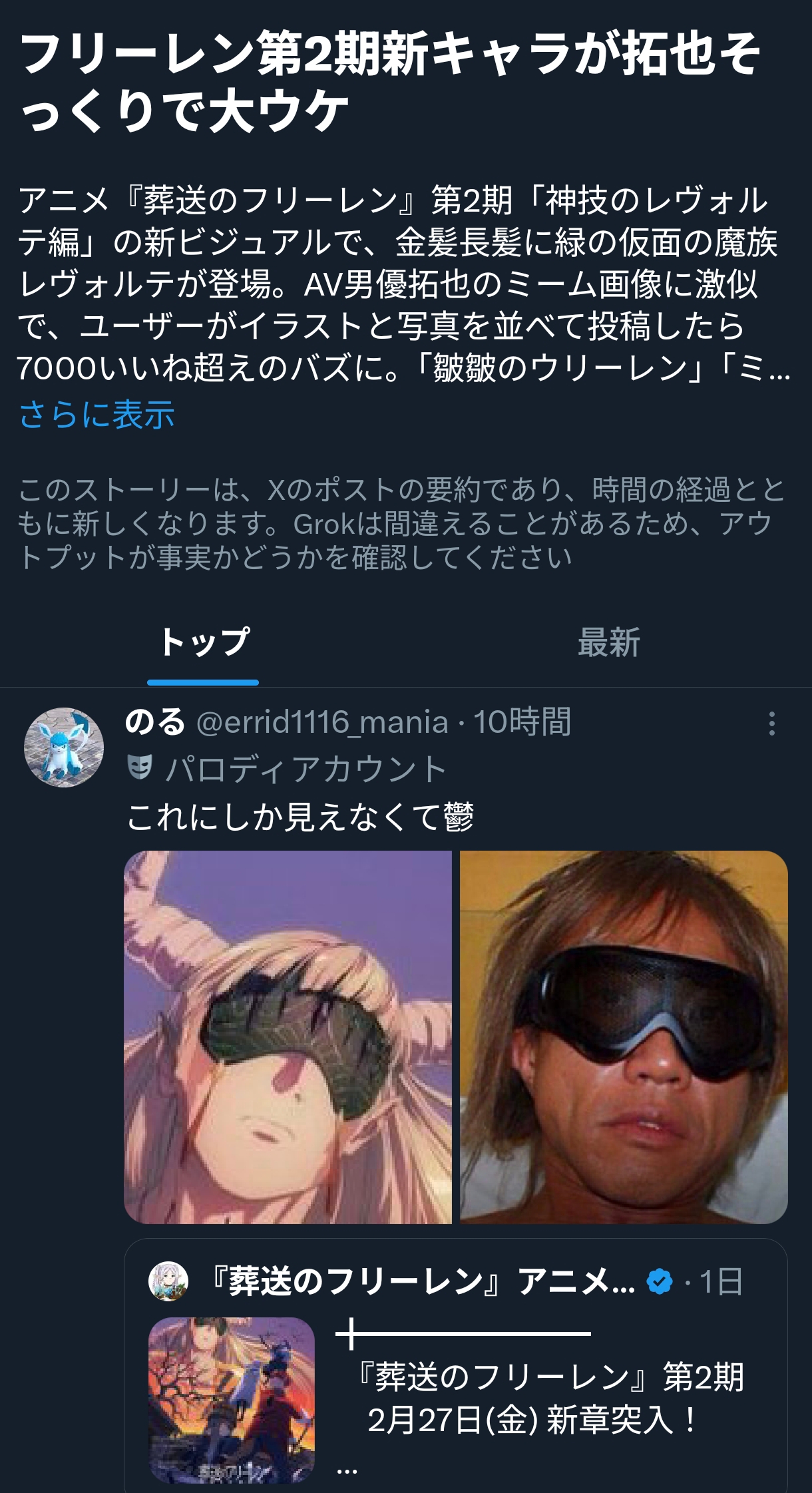 | … | 18無念Nameとしあき26/02/15(日)08:38:00No.1387501179そうだねx1>grok「拓也そっくりで大ウケ」 |