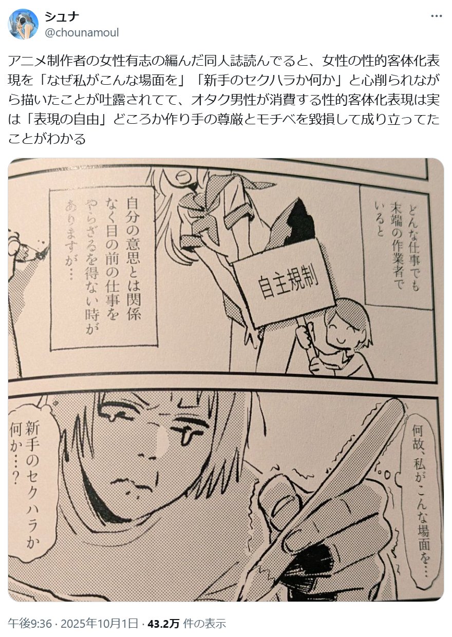 | … | 111無念Nameとしあき26/02/15(日)09:17:43No.1387509354+>反AIさん生成AIユーザーに著作権を問いながら自分達も著作権を侵害し放題なの漫画家に苦言を呈される |