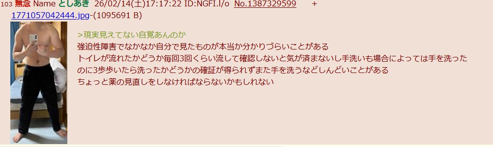 | … | 292無念Nameとしあき26/02/15(日)19:03:08No.1387649239+>悪化して統合失調症と検査で発達障害が発覚した |