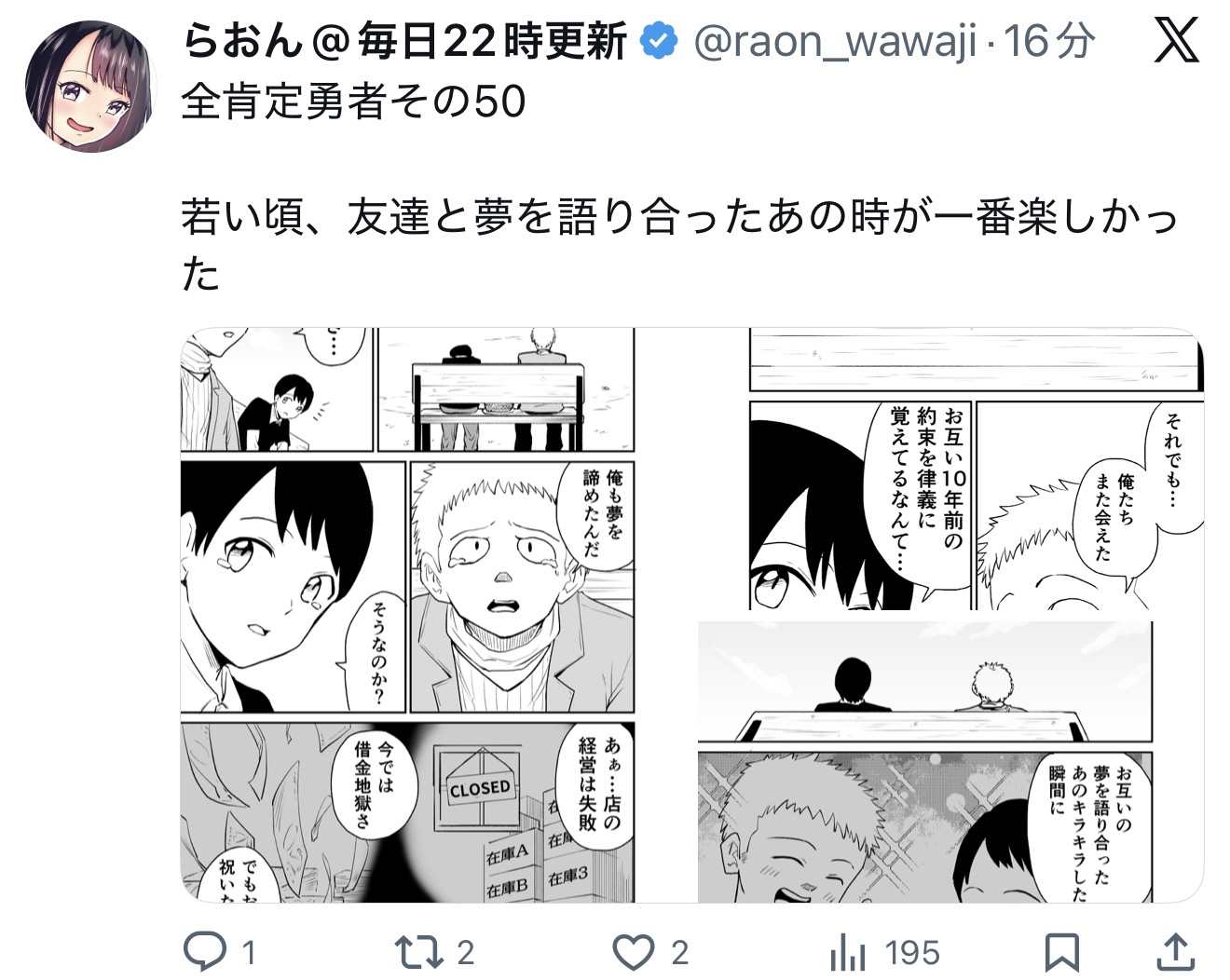 | … | 709無念Nameとしあき26/02/15(日)22:56:47No.1387720872そうだねx2これだけ人に精神的ダメージを入れられる漫画は初めてだよ… |
