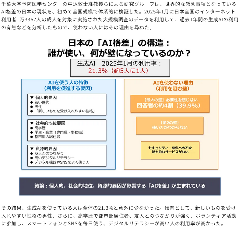 AI格差って職種じゃなくて使う人とそうでない人の差じゃないの削除された記事が4件あります.見る