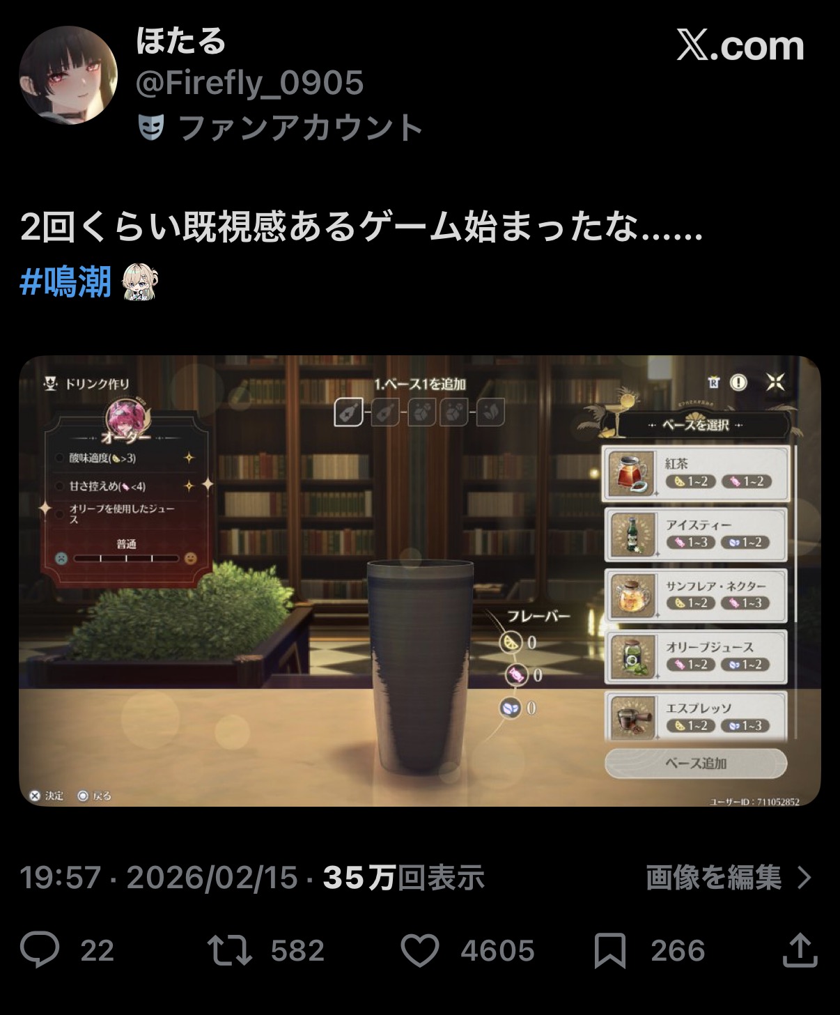 | … | 11無念Nameとしあき26/02/17(火)00:40:32No.1387961877そうだねx1カクテルじゃなくてピザ作らせてほしかった |