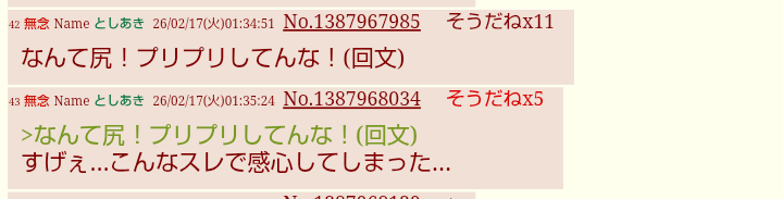 | … | 78無念Nameとしあき26/02/17(火)11:55:39No.1388012912+今更なんだけどアナルゼリーって要はう●こじゃないぬ? |