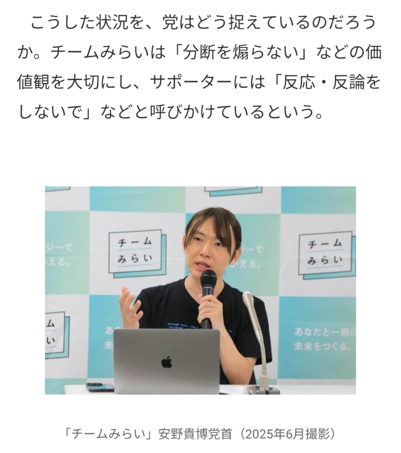 | … | 258無念Nameとしあき26/02/17(火)11:53:50No.1388012627そうだねx1>みらい批判してるアカウント見に行ったら全員中道支持者かアンチ高市だったのが衝撃的だった |