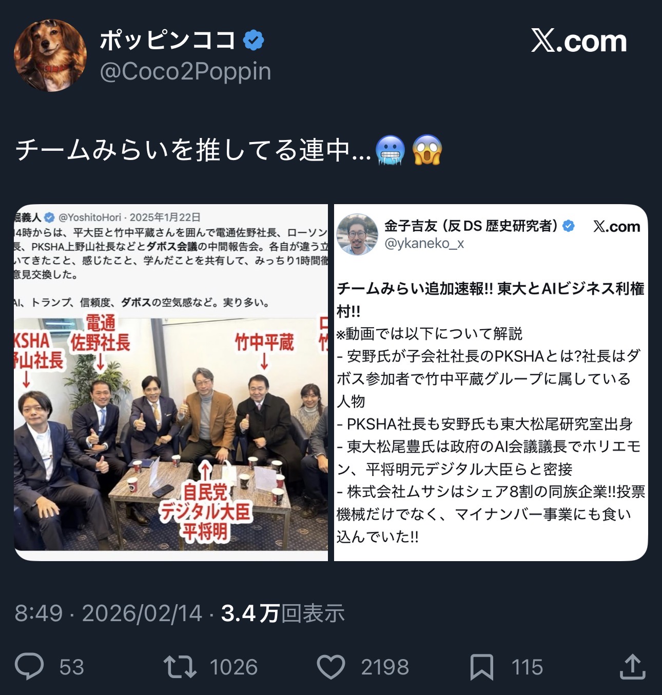 | … | 197無念Nameとしあき26/02/17(火)11:28:48No.1388009149そうだねx4 1771295328157.jpg-(161853 B) >>>竹中平蔵の党なんでしょ? |
