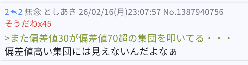 | … | 223無念Nameとしあき26/02/17(火)11:37:53No.1388010355+>図星か? |