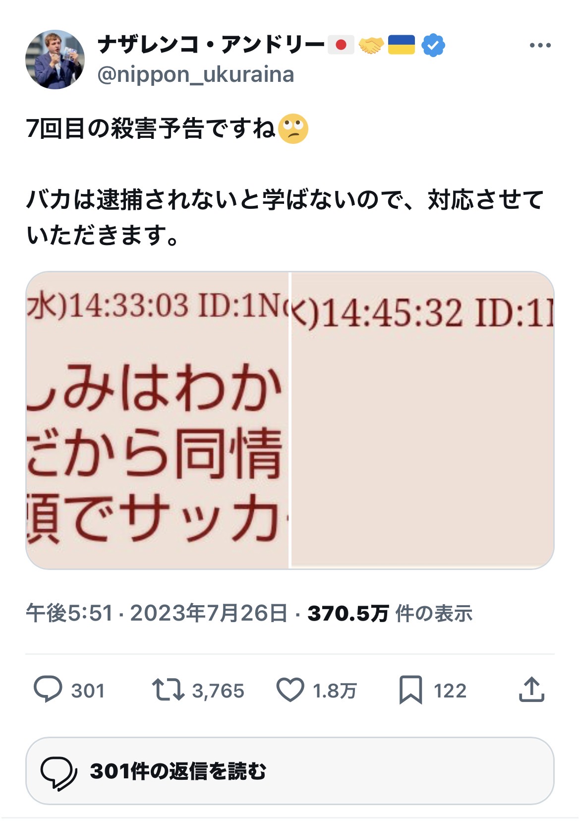 | … | 20無念Nameとしあき26/02/18(水)07:24:02No.1388193300そうだねx14さすがに殺害予告は目に見える形で対処して欲しいよな… |