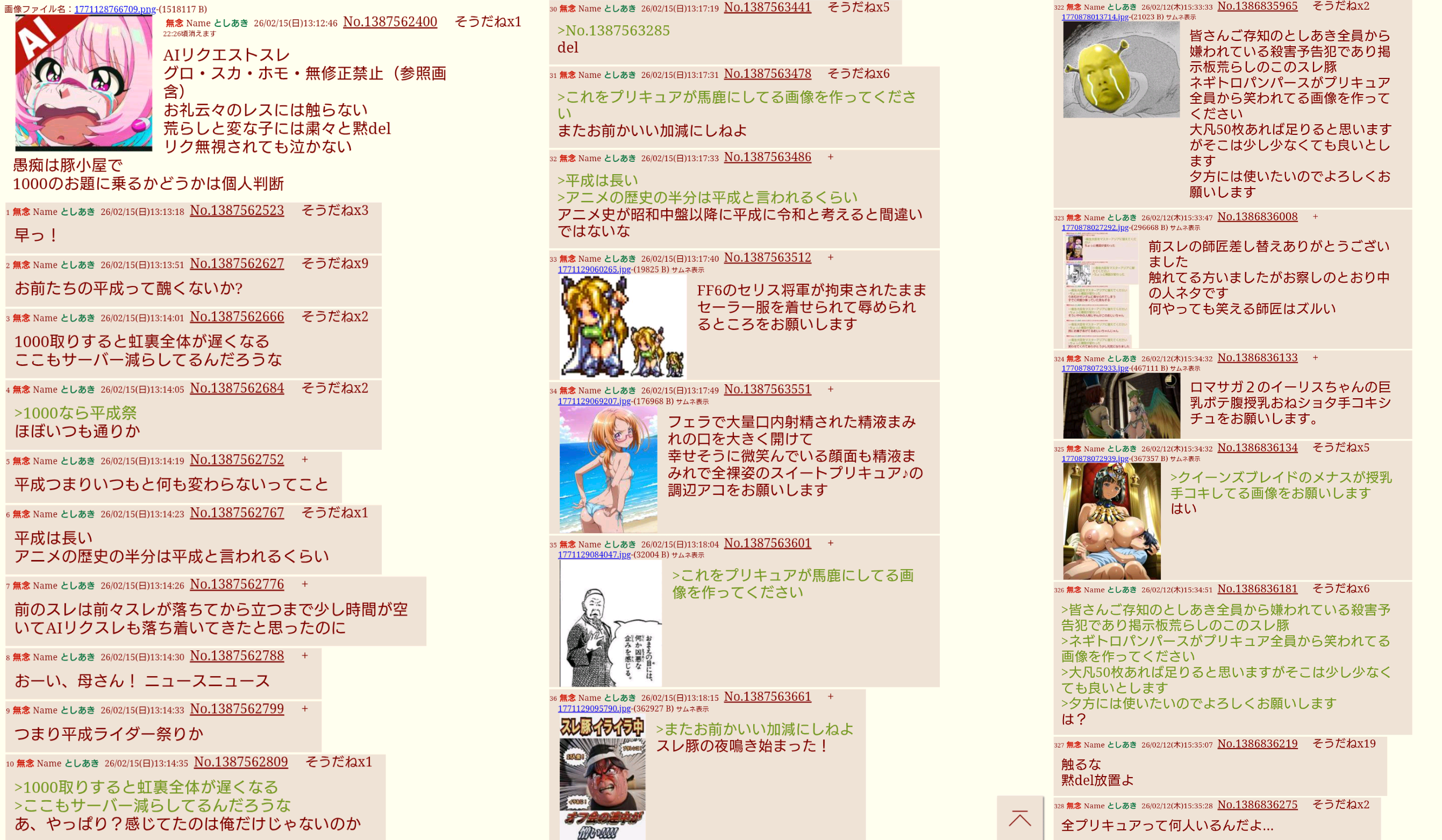 | … | 227無念Nameとしあき26/02/18(水)09:54:07No.1388207908+エロ画像掲示板なのにエロ画像スレが執拗に荒らされるしな |