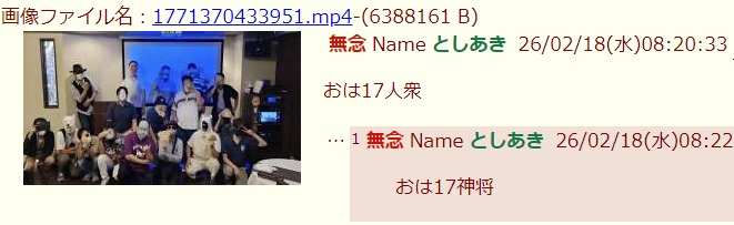 | … | 185無念Nameとしあき26/02/18(水)08:45:17No.1388200898+>粘着してる側を擁護する気はねーけどそもそも自分達であんな集合写真撮ってそれをわざわざネットに上げてんだからお互い様やん |