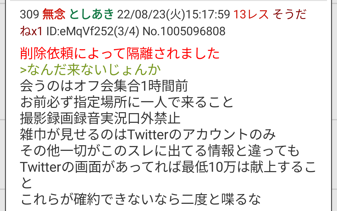 | … | 202無念Nameとしあき26/02/18(水)09:08:33No.1388203134そうだねx1 1771373313953.png-(168433 B) こんな無茶苦茶な要求に律儀に応えてその結果が何年にもわたる粘着とかオフ会開いたとしあきには同情するよ |