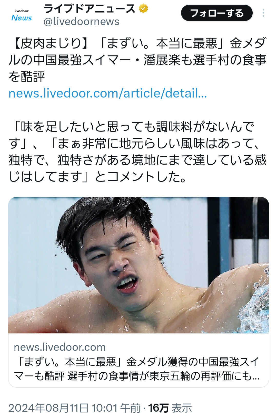 | … | 163無念Nameとしあき26/02/18(水)12:25:37No.1388229467+パリ五輪の食事はイギリスやドイツの選手ですらマズくて食えたもんじゃないって言ってたぐらいなんで・・・ |