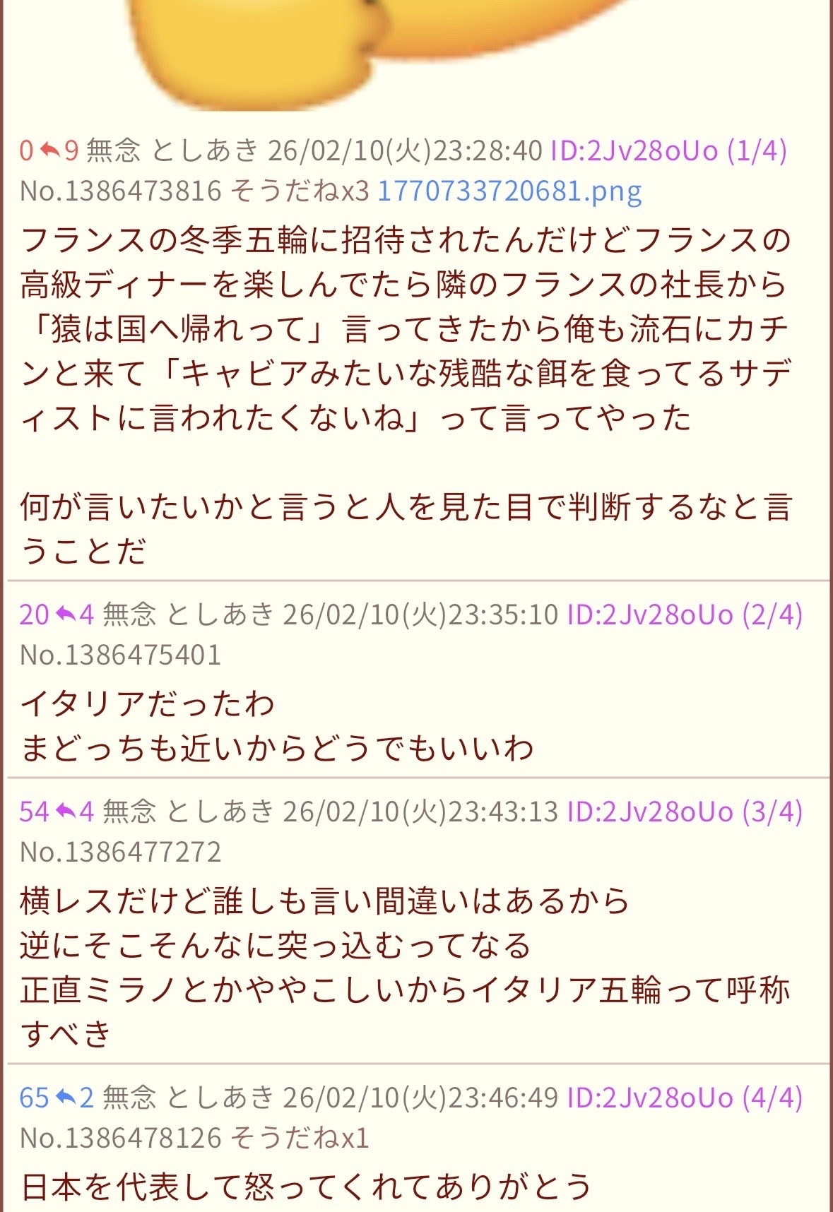 | … | 331無念Nameとしあき26/02/18(水)20:28:31No.1388318275そうだねx6>ID:ZqzYFn4. |