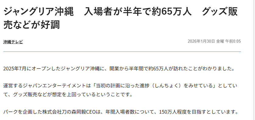 | … | 84無念Nameとしあき26/02/18(水)21:35:40No.1388338490そうだねx1>ジャングリアの開業準備の視察にほとんど沖縄に来なかったってバレてるよ |