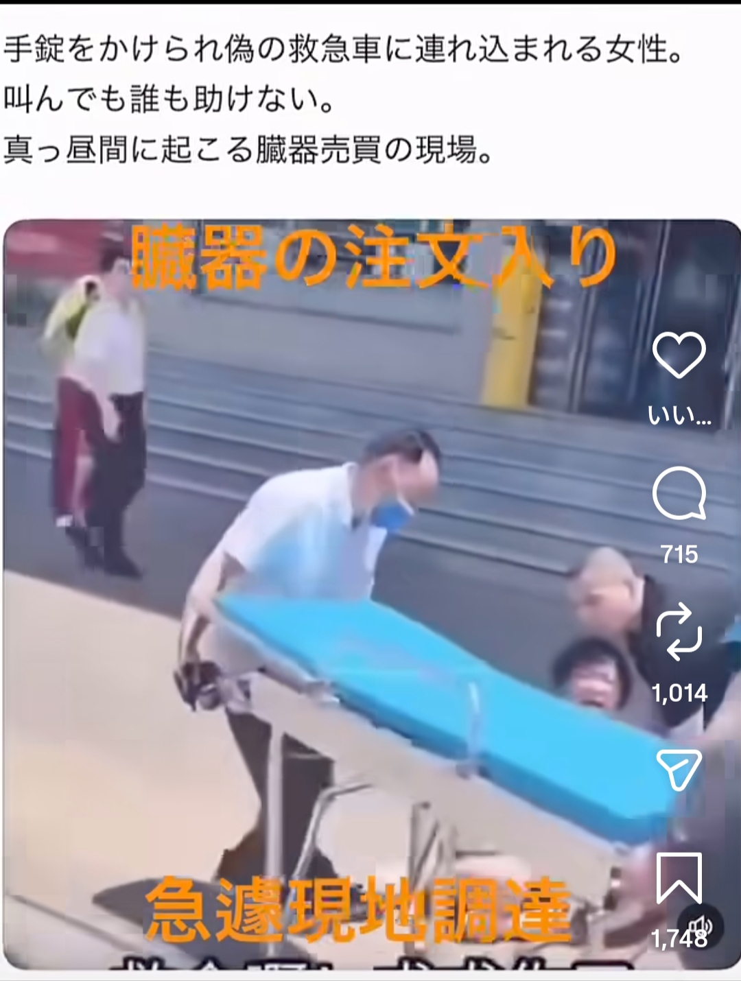 | … | 12無念Nameとしあき26/02/19(木)12:05:55No.1388437589+ 1771470355777.jpg-(130106 B) 臓器移植大国となった中国では現在、臓器狩りの対象が、当初の法輪功学習者から、国の未来を担う学生や生徒にまで拡大しているようです。 |