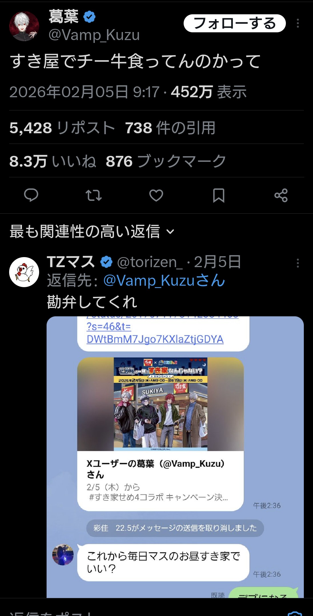 | … | 85無念Nameとしあき26/02/19(木)14:13:32No.1388460556そうだねx6葛葉の側に居るのは尊様だろ |