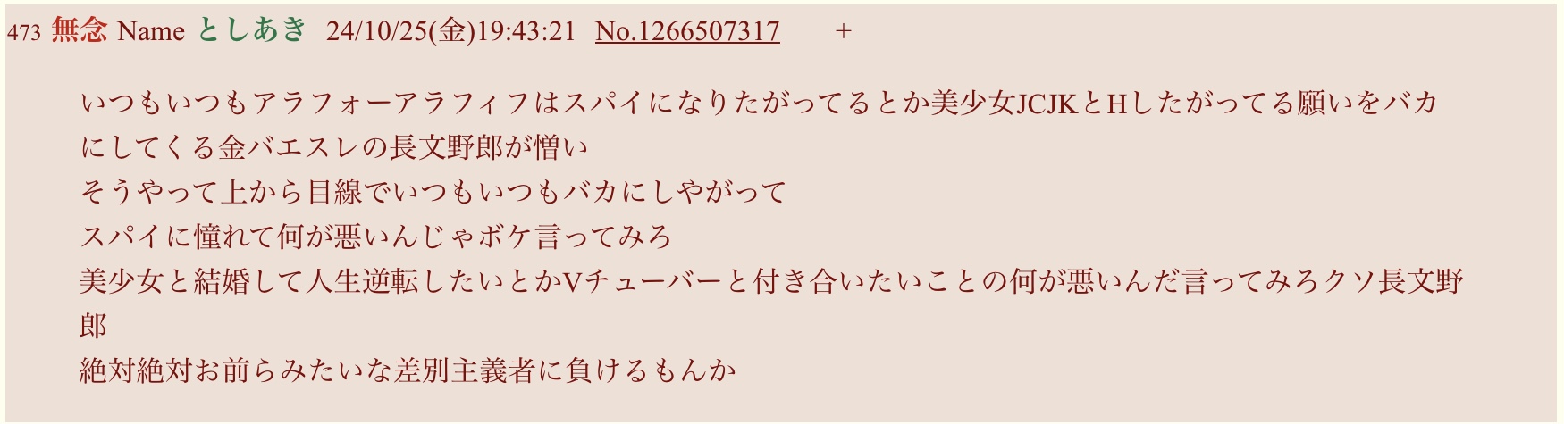 | … | 51無念Nameとしあき26/02/19(木)13:55:06No.1388457752+>(こうやって仲良くレスポンチしといて俺はお前らとは違うんだアピールされると)笑っちゃうんすよね |