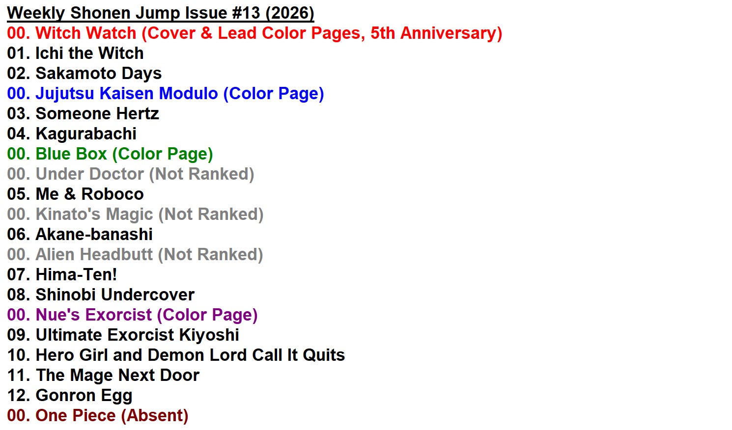 | … | 277無念Nameとしあき26/02/19(木)15:15:02 ID:9zcf7Xs.No.1388469920+言われて思い返すとネウロって巻頭貰ってた記憶マジで全然ないわ |