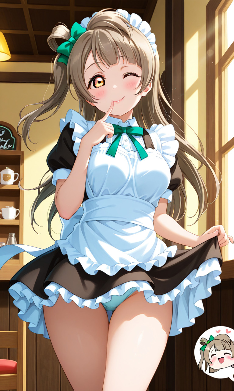 | … | 90無念Nameとしあき26/02/19(木)14:37:12No.1388464239+ 1771479432119.png-(55886 B) 和メイド衣装で接客中のごちうさの宇治松千夜ちゃんがこっそり内緒だよってポーズをしながらパンツを見せてくれるシチュエーションお願いします |