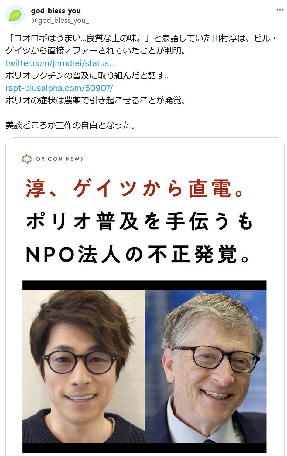 | … | 731無念Nameとしあき26/02/19(木)22:12:51No.1388560756+エプスタインがゲイツとかと一緒にワクチンとか後のウイルスによるパンデミックとかITとか宇宙開発にまで口出し金出し人脈コントロールしてたってのも出てるらしいぞ |