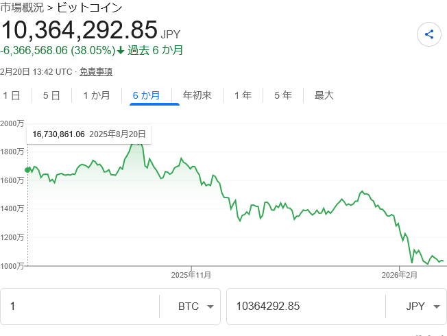 | … | 103無念Nameとしあき26/02/20(金)23:53:35No.1388799483+>ビットコインって1年に20万円以上現金化したら税金で半分持っていかれるから |