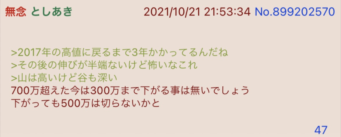 | … | 69無念Nameとしあき26/02/20(金)23:28:47No.1388793577+ 1771597727587.jpg-(73244 B) 「もう〇〇ドル(円)以下にはならない」 |