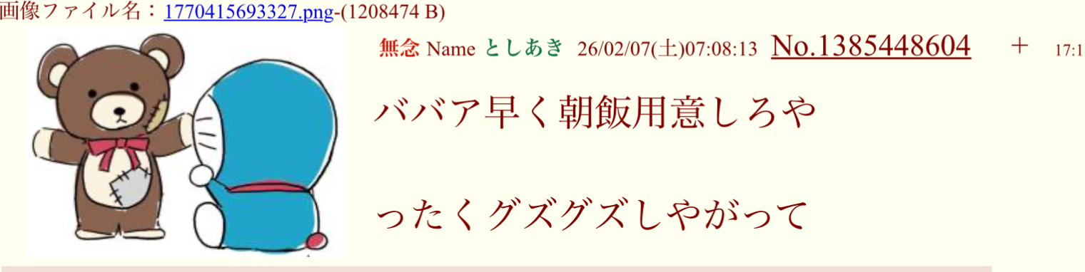 | … | 221無念Nameとしあき26/02/20(金)23:37:35No.1388795785+>No.1388795388 |