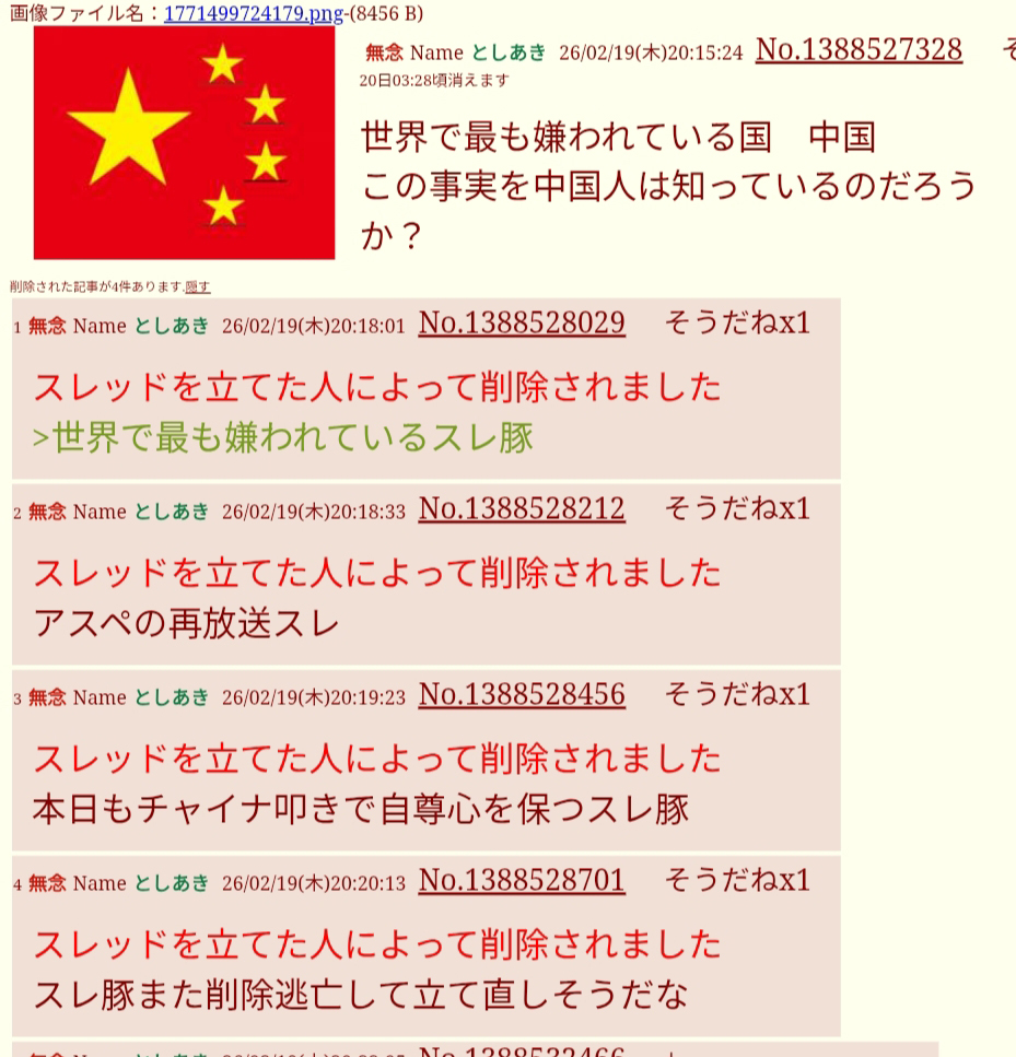 | … | 177無念Nameとしあき26/02/20(金)23:25:53No.1388792759+ 1771597553969.jpg-(485537 B) ブタ連呼さんが中国人だったなんて… |