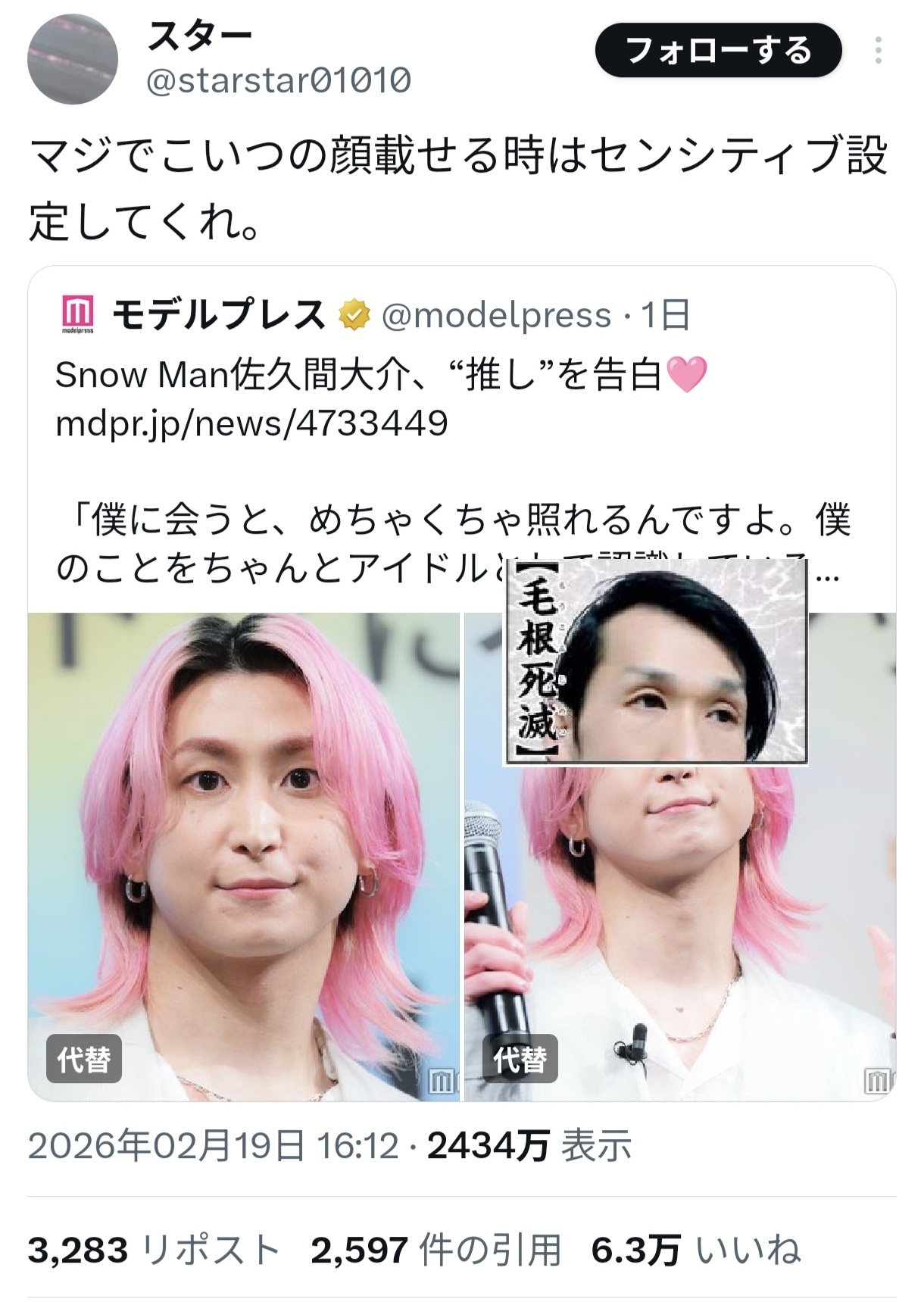 | … | 58無念Nameとしあき26/02/20(金)23:23:16No.1388792066+佐久間大介はVTuberの星街すいせい絡みで変なアンチがいるかもね |