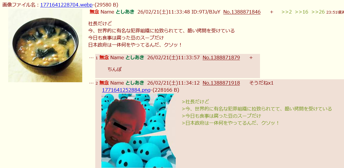 | … | 3無念Nameとしあき26/02/21(土)09:56:46No.1388855332そうだねx5 1771635406931.jpg-(15335 B) >1771634996961.png |