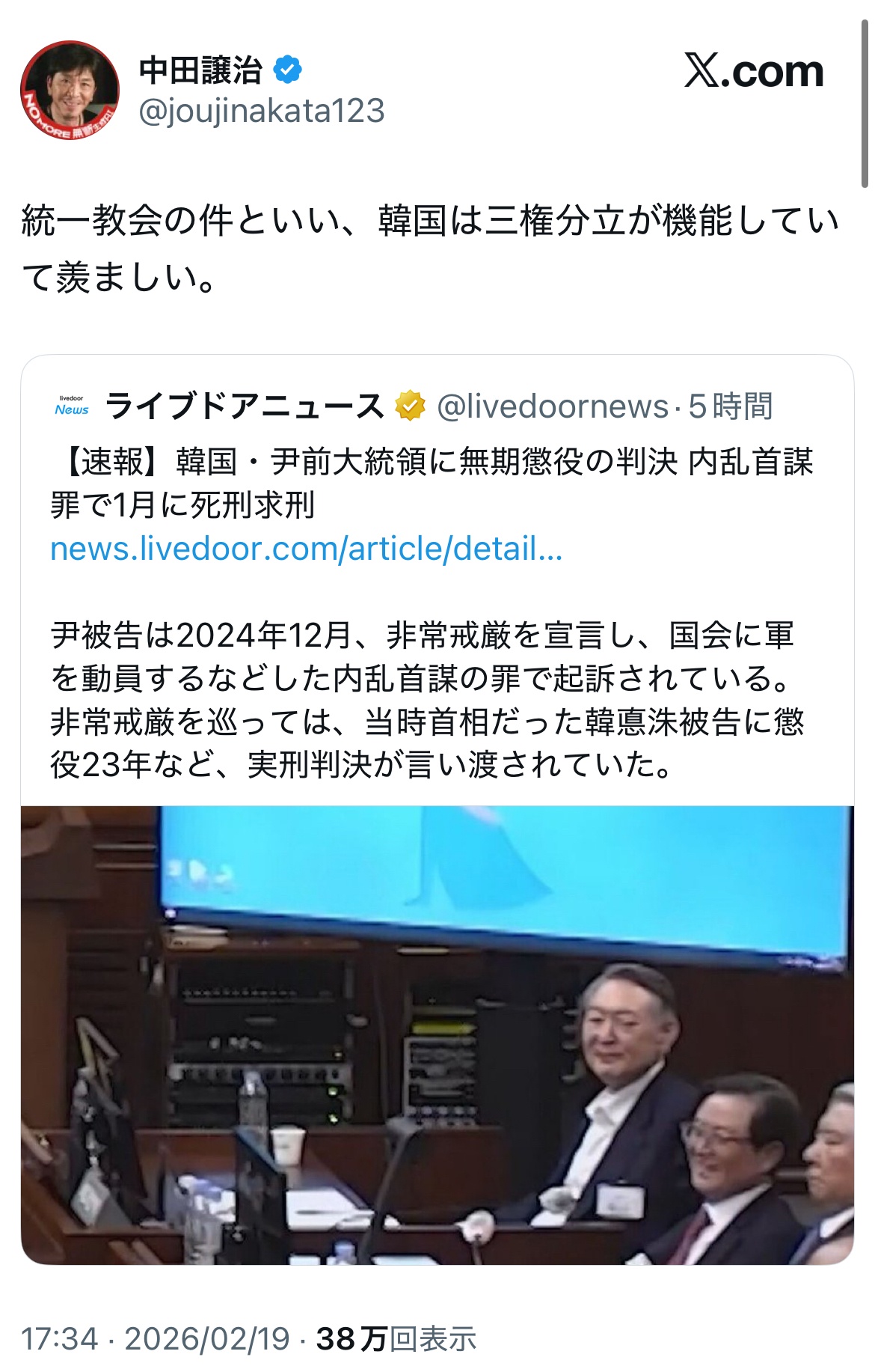| … | 550無念Nameとしあき26/02/21(土)12:29:25No.1388882829+>>>韓国元大統領でさえ戒厳令で無期懲役というのにスレ画ときたら |