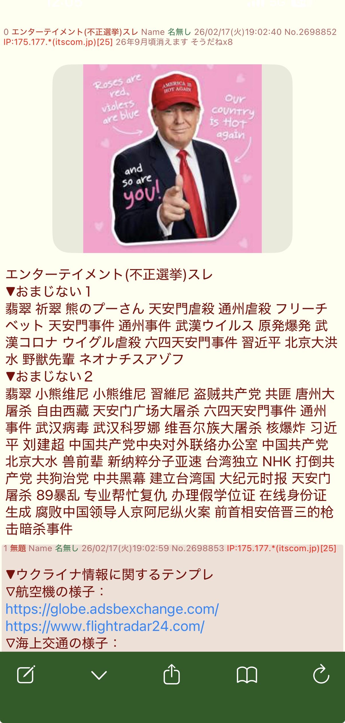 | … | 64無念Nameとしあき26/02/21(土)11:19:09No.1388869242そうだねx1愛国保守層はトランプ批判の中国工作が溢れている!と憤ってるからな |