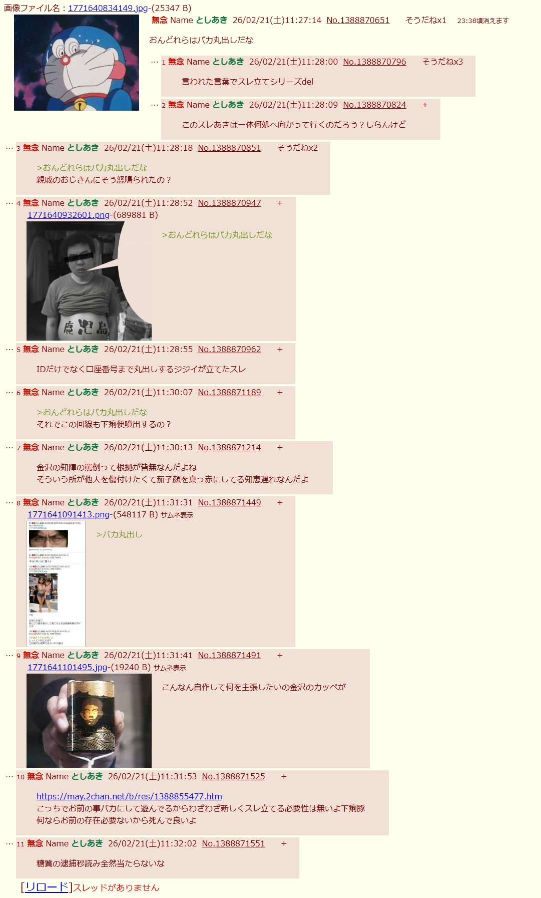| … | 30無念Nameとしあき26/02/21(土)11:49:44No.1388874824+>バカ丸出しなスレ何で消したの? |