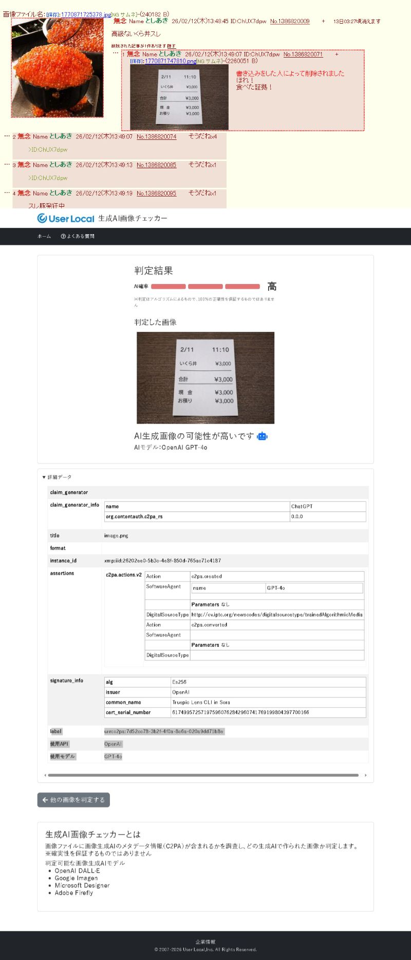 | … | 100無念Nameとしあき26/02/21(土)13:28:52No.1388895645+スレ豚は悔しかったら幾らでもAIレシート作って良いんだよwww |
