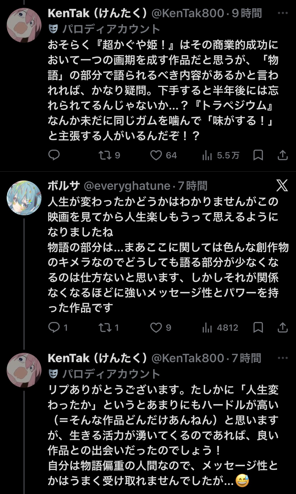 | … | 83無念Nameとしあき26/02/23(月)06:21:09No.1389392754+>君の名はの時も思ったけど深くない刺さらない若いのに受けてるだけの駄作みたいに言ってる奴らって若者をバカにしてるつもりなんだろうけど |