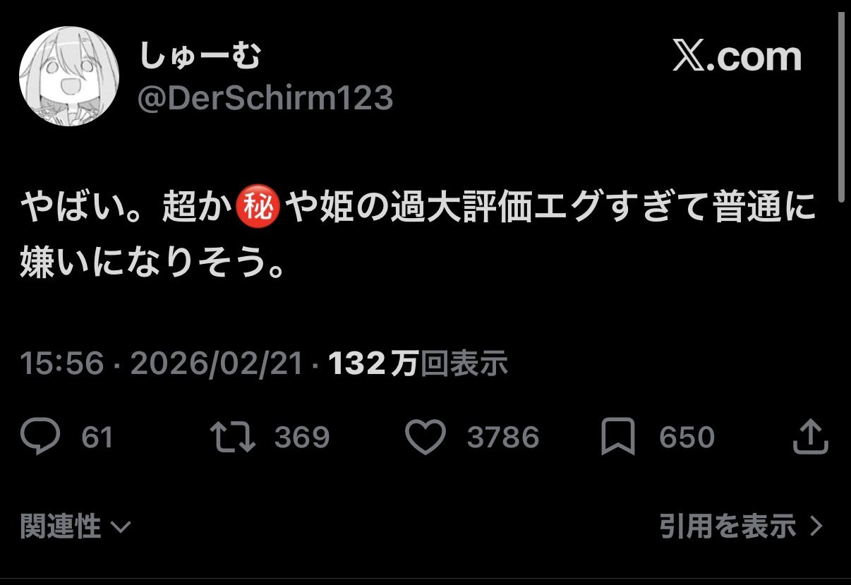 | … | 86無念Nameとしあき26/02/23(月)06:22:09No.1389392813そうだねx1さすがにこれ面白いと思えるのってどこか脳が異常なんだわ |