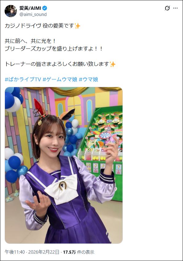 | … | 16無念Nameとしあき26/02/23(月)22:21:40No.1389599045そうだねx2>あいみんがウマ娘になったんやな |