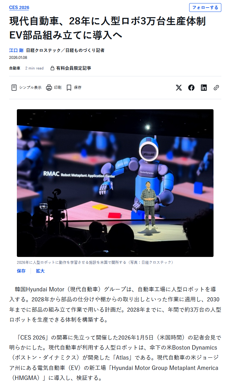 | … | 92無念Nameとしあき26/02/24(火)01:46:16No.1389641486+ 1771865176343.jpg-(757529 B) 現代自動車、28年に人型ロボ3万台生産体制 EV部品組み立てに導入へ |