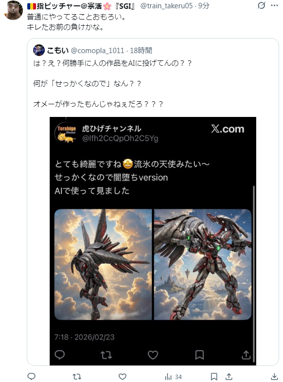 | … | 65無念Nameとしあき26/02/24(火)01:33:40No.1389640266+AIの進化すごいね |
