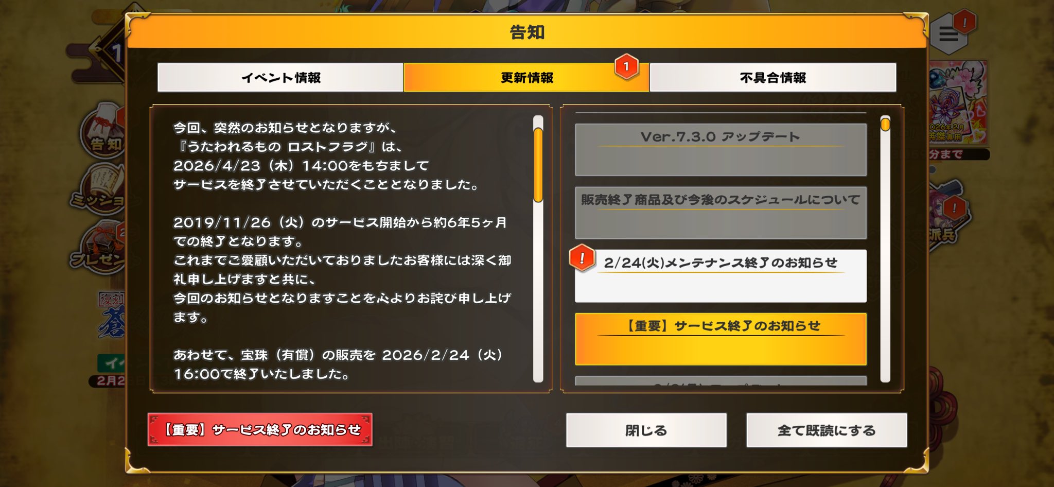 | … | 625無念Nameとしあき26/02/24(火)18:19:39No.1389746781+6年はデレステより4年少ないだけの大往生 |