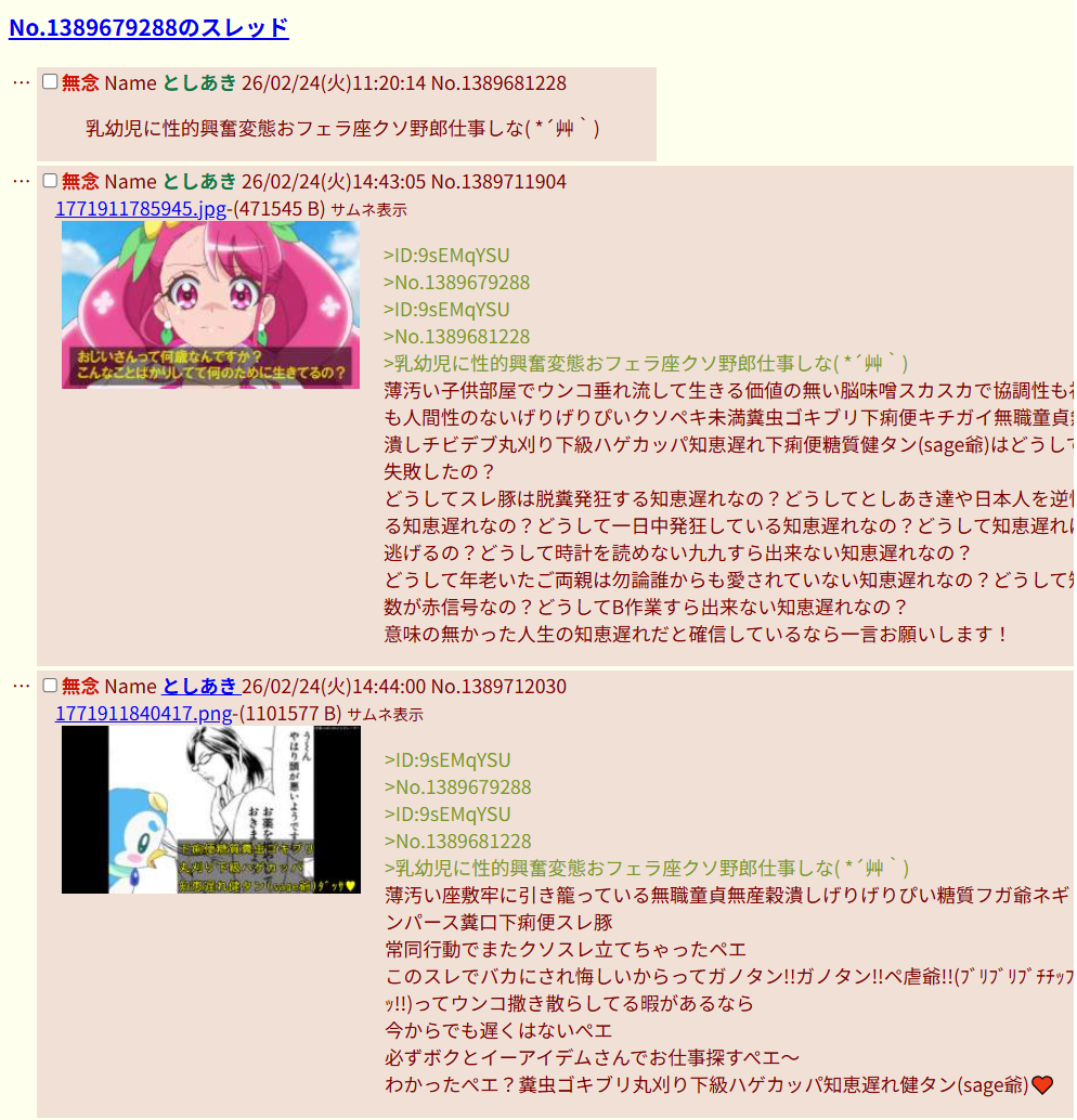 | … | 56無念Nameとしあき26/02/24(火)17:02:55No.1389732891+ 1771920175188.png-(444392 B) 農奴ナリキリとプリキュアガイジが喧嘩してて草 |